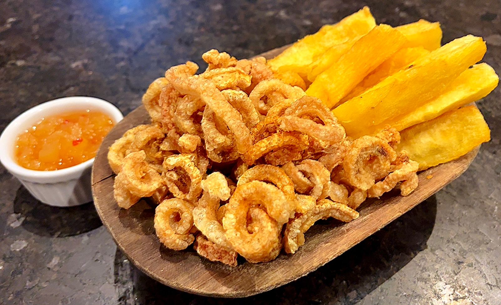 • TORRESMO E MANDIOCA FRITA